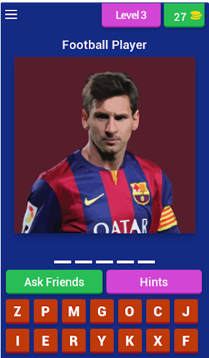 このゲームはフットボールとフットボール選手を愛する人のためのものです。 ここであなたはあなたのお気に入りのフットボール選手の名前を推測して、フットボール選手のクイズを推測することで知識を測ることができます。 フットボール選手を推測することによってあなた自身を証明する。 スタートが簡単、プレイが簡単です。