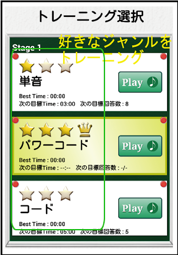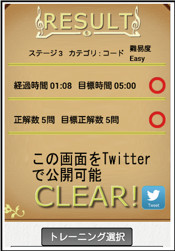 ☆ 一定の条件をクリアすれば次のステージが表示され、ゲーム感覚で耳コピ力を強化出来ます。