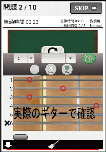 - 100種類以上のコードの指版を見ながら勉強が可能、テスト画面でもオプションとして表示