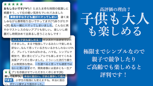 ◆テレビ東京系列 ワールドビジネスサテライト(WBS) でも紹介された、きもちよすぎる脳トレゲームアプリ