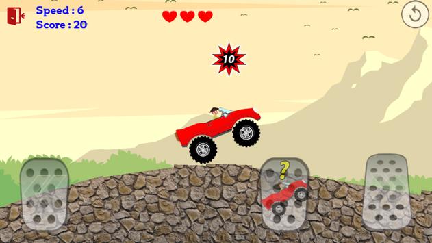 As you climb the hill you need to collect the diamonds before you topple the car. Each of the collected diamonds increases the speed and power of the car.