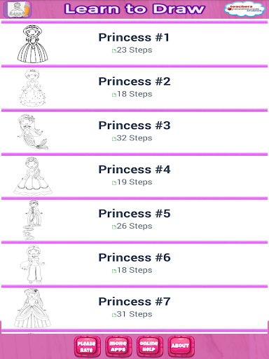This game is an entertaining, educational tool that will encourage the artist's creativity. Whether drawing the frozen Snow Princess, Ice Queen, magical Cinderella or the adventurous Little Mermaid, you can choose from a wide array of favorite fairy tales princesses and learn to draw them with step by step instructions. This drawing game can make anyone feel like an artist.