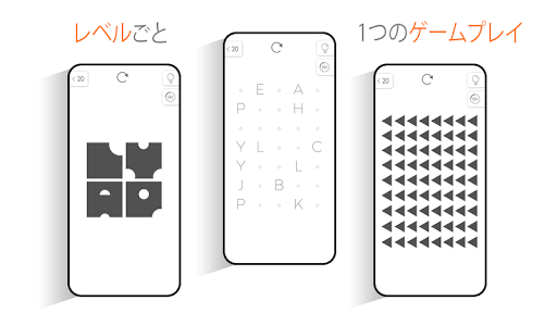 各パズルでPLAYの単語またはアイコンを見つける必要があります。ゲームはあなたの論理的思考、創造的思考、鋭さ、正確さ、そして記憶を測定します。