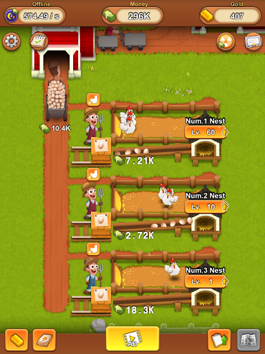 4 - Buy more farms, raise more chickens, lay more eggs, make more money