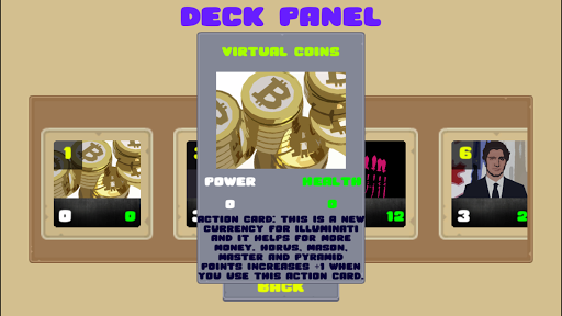 In this game, your are the master of your own Illuminati Empire. Defeat your online enemies and improve your empire. Join tournaments and try to win many matches as you can.