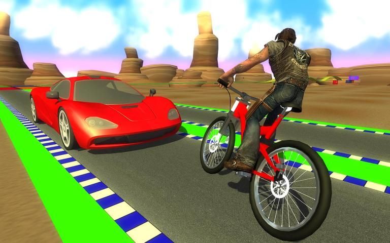 This game is designed for the impossible and very difficult tracks become an extreme BMX rider and flips on the racing cars which will cause your death and be a BMX king the tracks and paths are designed in the desert with hundreds of various obstacles your main task is the survival on the path and show to all BMX professionals that you can do all the stunts as they can do. Skate your BMX on the impossible roads and touch the finish line for further levels.