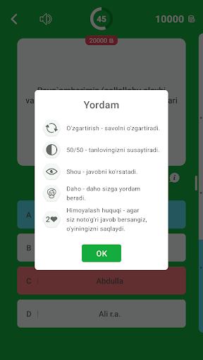 一般的な知識とIQを改善する素晴らしい方法は、実際のMashg' o&#39が計画からです。 o'あなたはオンラインである必要さえありません - あなたは{" 🌙イスラムミリオレイヤー-o' uzbek"必要に応じて、インターネットなしでスマートクイズソフトウェアをダウンロードしてから、インターネットをダウンロードしてください。クイズの機能的機能(' yini)から' o