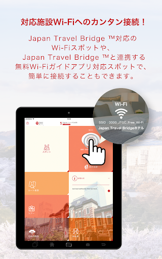 Japan Travel Bridge ™対応のWi-Fiスポットや、 Japan Travel Bridge TMと連携する無料Wi-Fiガイドアプリ対応スポットで、簡単に接続することもできます。(対象施設順次拡大中)