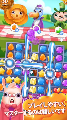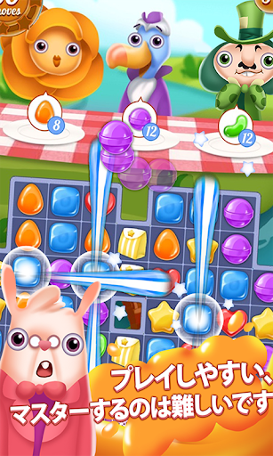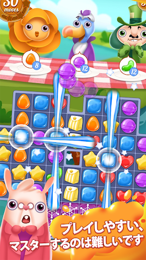 マッチ3は、キャンディーを粉砕するために同じ色のキャンディーを並べます。正方形のキャンディーを形成する際に、蝶がランダムなセルに奇跡を配置します。
