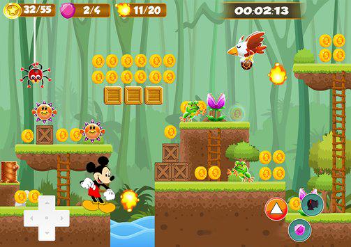 Mike Jungle Mouse Adventures is a free running games About Mouse who is running to help his girlfriend after she was kidnapped. Help Mouse to rescue his girlfriend after she was kidnaped by a vicious dragon. Be fast, quick, and accurate in order to help mouse to cross a sboy jungle adventures full of monsters . The jungle adventures is a big forest consisted of different risky enviroments. Collect power ups and coins in order to power up Mouse to the maximum level, with that been said you will be able to shoot explosive bombs to kill monsters from distance with mouse after the power up. Yhe best to kill the monsters with mouse is by shooting explosive bombs from distance. You will meet plenty of monsters inside the jungle adventures, you have to dodge all monsters and jump over obstacles in orer to keep mouse alive. Download for free and enjoy the wild jungle adventures with mouse.