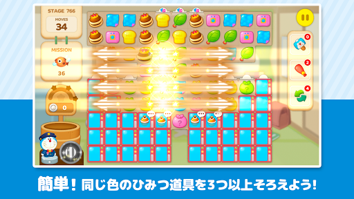 同じ色のひみつ道具のブロックをそろえて消す、簡単パズル♩