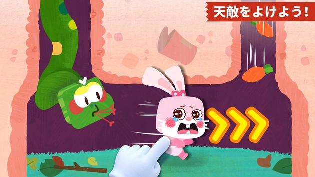 クモやウサギと、かくれんぼをして遊ぼう!クモが鬼でウサギが隠れる番。ウサギが隠れるのを手伝ってあげられるかな?地下に穴を掘って、ウサギをその中に隠しておこう。シー!静かに、クモがやってきたよ。クモはウサギを見つけられるかな?当ててみて?