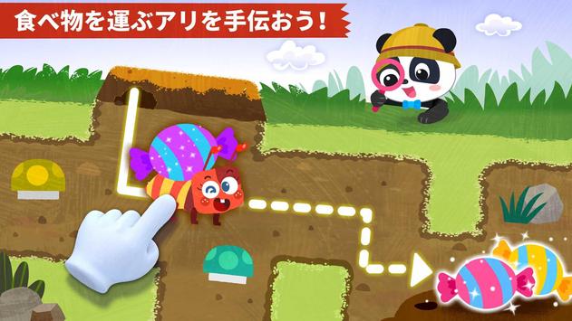 アリが食べ物を運ぶのを手伝ってあげよう。道を確認して、リンゴやチーズをアリの家に運んであげよう。いたずら好きなキノコがやってきて、食べ物を奪おうとしているぞ、どうする?食べ物を無事に家に持って帰りたいって?邪魔をするキノコをよけなければいけないよ。できるかな?