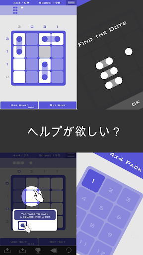 一つ一つのロジックドッツはあなたの脳みそをフルに使います。まず、数字に囲まれた格子状の空のボードが現れます。プレーヤーはタテヨコ列に必要なドット数があることを確認しながら、ボード上に隠されたパターンを見つけなくてはいけません。