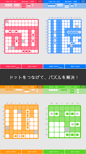-見た目の美しさ:みずみずしくてカラフルなレベルの数々があなたの目を楽しませます。ロジックドッツは、色盲の方に優しいパズルです。
