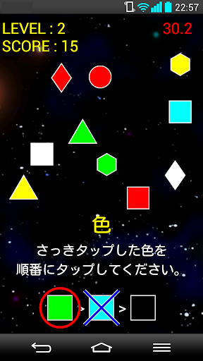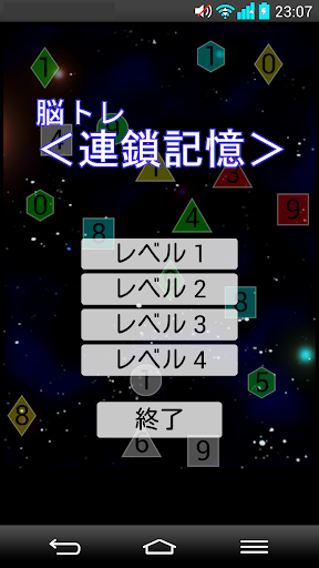 数字、色、形を連続して覚えて、記憶力を鍛える簡単な脳トレゲームです。