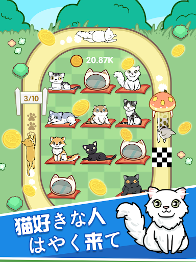 カワイイ猫チームを作って勝負しよう! 小さな猫から始めて、同じ猫をマージすると、大きい猫になります。 高レベル猫イコール多くのコイン 放置収入:あなたがゲームを離れても、コインを手に入れることができます。