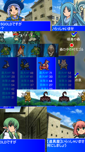 その先には次の町があり、「道具屋」で新たな装備品なども手に入ります。所持金に余裕があれば購入して「装備」させましょう。