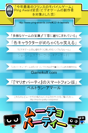 ムーチョパーティーへようこそ!家族で、家で、旅行中に、友達同士あるいは仕事場で、同じ画面で2人で(または1人で)5/42種類のゲームの中から1つ選択してプレイできる理想的なアプリです。