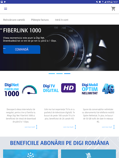 Cele mai bune oferte sunt mereu la Digi, iar acum le găsești mereu pe net, în aplicația DIGI.ro. Internet fix cu 1000 Mbps, Digi Mobil Optim Nelimitat, Televiziune disponibilă oriunde și Energie electrica - suficiente motive să fii sau să vii la Digi. Nu am uitat nici de portare - vii cu numărul tau în rețeaua Digi Mobil făra complicații, fără așteptare. Totul online.