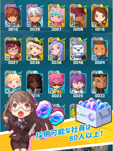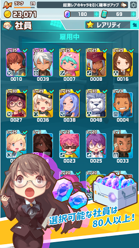 - 採用可能な社員は80種以上。それぞれ10種のタイプに分かれ、6種のユニークスキルを併せ持つ!