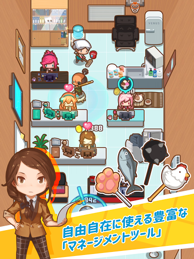 - オフィスのレイアウトの改良&カスタマイズをして自分好みにアレンジしよう。特殊オフィスアイテムを使って会社を世界規模へ育て上げよう!