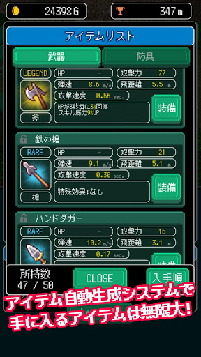 見つけたアイテムの能力値は毎回自動で生成されるので