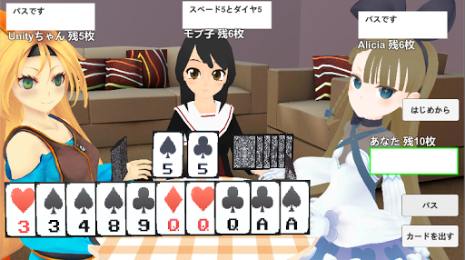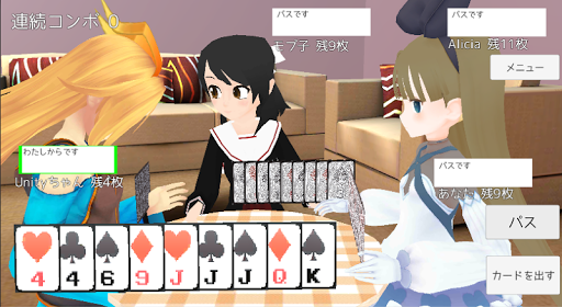 3Dの美少女3人と楽しくトランプ遊びができます。