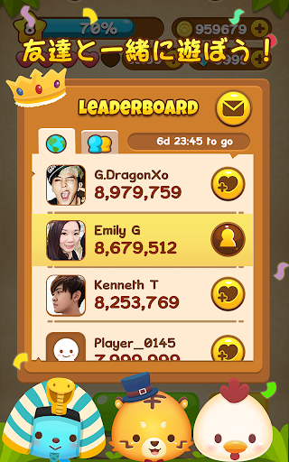 - 週間ランキングで、友達とスコア比べられる!上位にはプレゼントがもらえるよ!