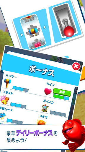 ステージでつまずいたときはブースターが役に立つ!メテオで列を消し、ハンマーで邪魔な障害物をクラッシュ!ブースターをうまく使ってステージを爽快にクリアしよう!