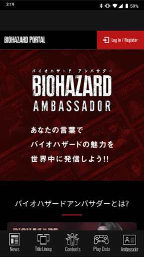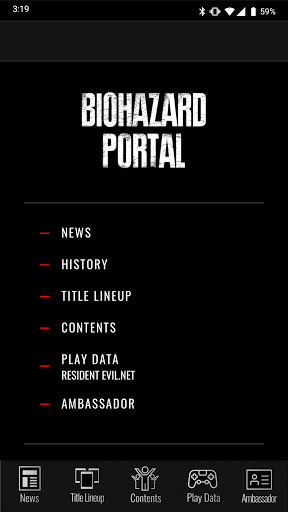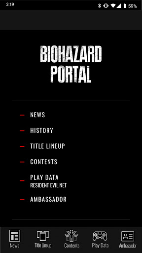バイオハザード ポータルは、バイオハザードに関するさまざまな情報を発信するブランドサイトです。本アプリは、このバイオハザード ポータルと連動しており、 新タイトルの最新情報や、各コンテンツの更新情報、各種グッズ紹介などバイオハザードの新たな魅力を発見することができます。