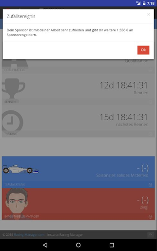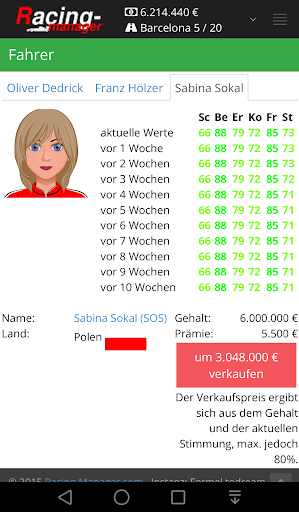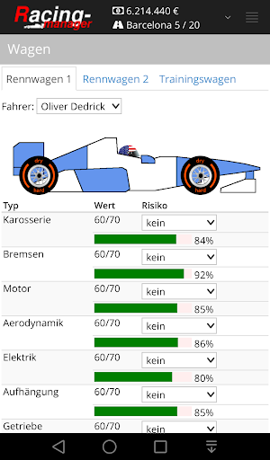 Racing Manager is a Formula 1 racing game. You take control of your own racing team. Your tasks are to buy drivers, mechanics and items, to design your own racing car and each week you challange other players. A race weekend contains training, qualification and the Grand Prix. You get points for driver and team championship. In addition to finance, you train your drivers, find talented youth drivers or make a good setup for the race. You can also be creative and style your car or define your own avatar image.