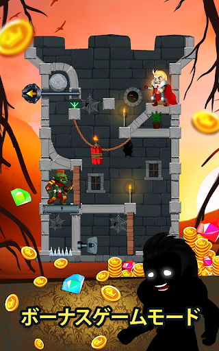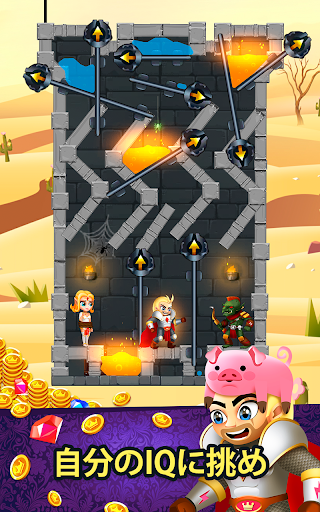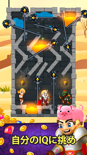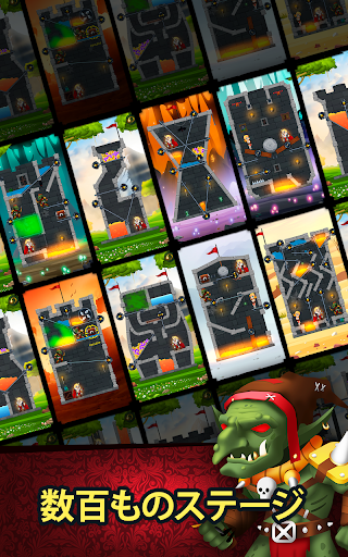 🤯 たっぷりと面白さの詰まったパズルを解いて、勇敢な騎士に宝を余さず回収させましょう。ピンをドラッグし、灼熱の溶岩や毒ガスをパズル上の敵のところに流してやっつけましょう。ロープを切って恐ろしいオークどもから姫を救い出しましょう。