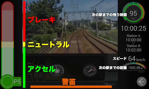 ビデオ映像を使った鉄道運転シミュレーションゲーム。 運転席からの視点で電車の運転を体験することができます。 時刻表を厳守して駅の正しい位置に電車を到達させましょう。 リアルな雰囲気を目標としています。 脱線や衝突事故などのアクション要素はありません。 ウェブサイト経由で他の路線データも読み込めます。是非ご利用ください。 オフラインの時でも基本部分はプレイ可能です。