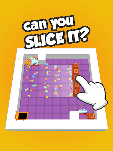 ブロックをスワイプして、スライスして小さなキューブにしましょう。すべてのブロックをスライスしたら、準備完了です!あとはキューブを穴に落として... > ステージクリア!