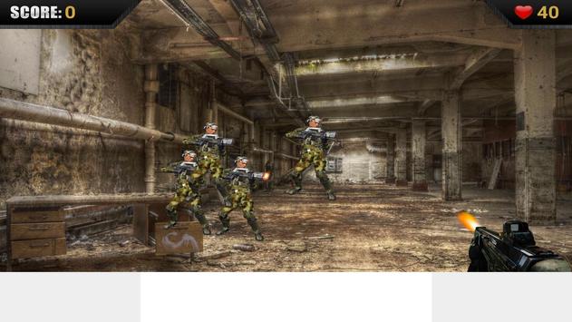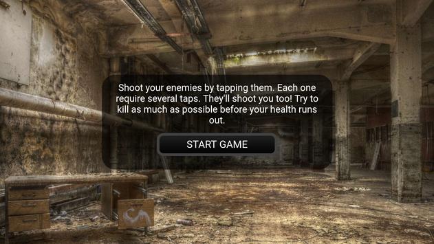 Shoot your enemies by tapping them. Each one require several taps. They'll shoot you too! Try to kill as much as possible before your health runs out.Shoot your enemies by tapping them. Each one require several taps. They'll shoot you too! Try to kill as much as possible before your health runs out.
