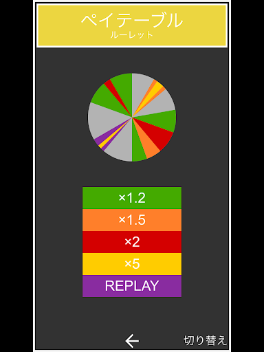 ストップボタンを押すとルーレットが止まり、針が指す部分の色によって賭けたコインが数倍になって返ってきます。