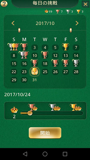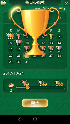 日々の課題 - 毎日3つの課題が待っています。 ソリティアは金/銀/青銅のカップと余分なクラウンを持つ受賞者に報酬を与えます。簡単なものから難しいものまで、さまざまな日々の作業:1枚のカード図面、ヒントなしの1枚のカード図面、3枚のカード図面。