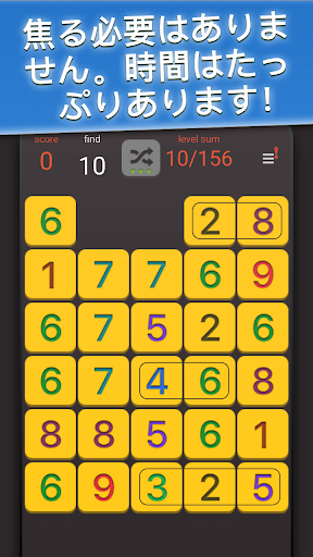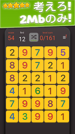 - もう動かせる数がなくなって画面に残った数より集めた数の方が多ければレベルが完成、次のレベルにすすめます。