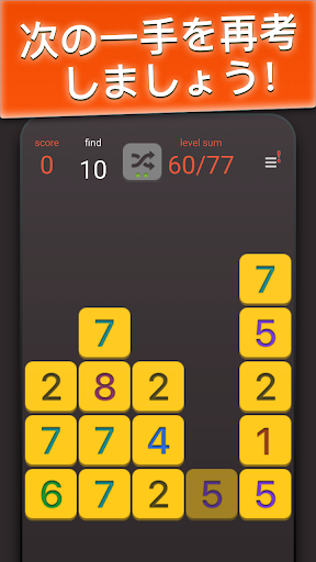 ヒント: 画面からできるだけ多くの数を消せばレベル完成の可能性が高い。