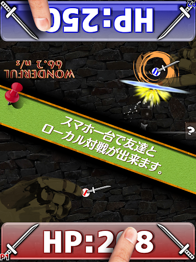 一人でも白熱の試合を楽しめますが、1台のスマートフォンで、二人で対戦することも出来ます。
