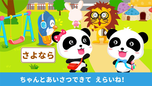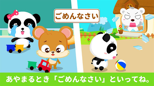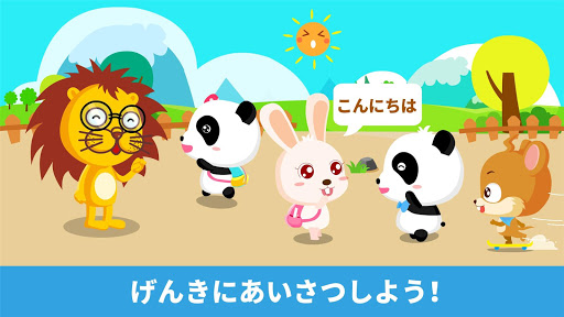 あいさつをテーマにした知育アプリで遊んで、あいさつの言葉を覚えます。くまちゃんやうさぎちゃんや、おサルさんなどかわいい動物たちと楽しくあいさつをしたり、パンダちゃんの怪我の手当てをして、「こんにちは」と「ありがとう」と言えるようになりましょう。そのほかの2つ場面では「ごめんなさい」と「さよなら」のあいさつ・マナーを体験することができます。覚えた言葉を応用するもう一つのゲームも用意しております。楽しく遊びながら、自然にあいさつの仕方を身に付けることができます。ぜひ、お子さんと一緒に遊んでみてはいかがでしょうか?