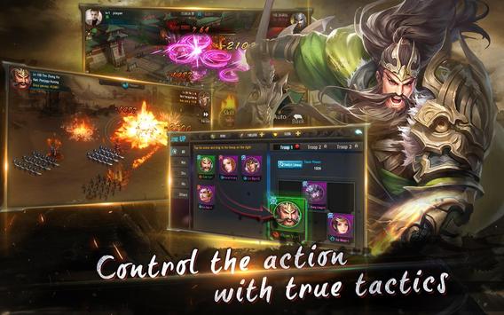 You can command 3 troops at the same time. Control 15 heroes and thousands of soldiers at real time, and carry out various tactics like Siege, Road-breaking, Inrush with allied players, to launch a fierce attack against the opponents.