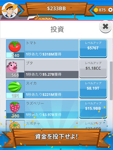 大量の資金を投資して、もっと大きな納屋、もっと優れた作物を手に入れよう。さらに成功すれば、大規模投資家の興味を惹くこともできる。