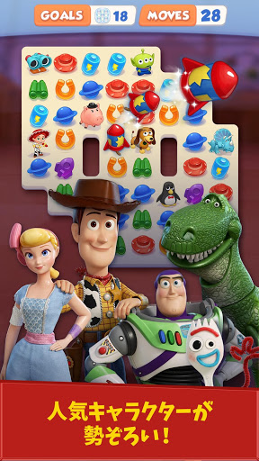 ディズニー/ピクサー映画『トイ・ストーリー』シリーズの世界を楽しめるパズルゲームがついに登場!ウッディやバズをはじめとするおなじみのキャラクターや、最新作『トイ・ストーリー 4』 のキャラクターまで、人気キャラクターが勢ぞろい!指先ひとつで楽しめるトイ・ストーリーマジック!このマッチ 3 パズルには“俺がついてるぜ”!
