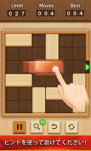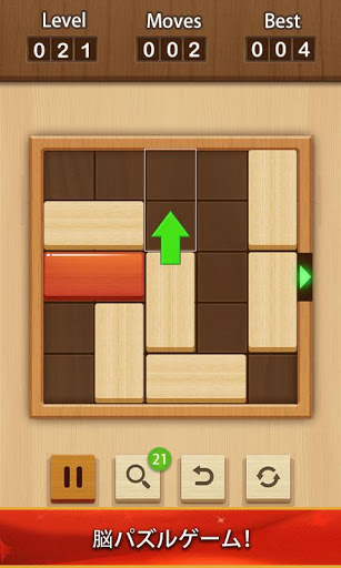 上下または左右に動かして赤い木のブロックを解除すると、勝ちます!