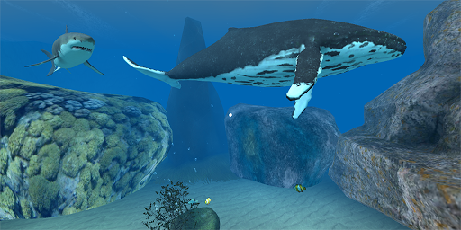 小さなアニメーション魚のたくさん。あなたの周りにサメとクジラを持つことがどのように感じます。だから魚になる準備をして、本当の水中生活を感じます。