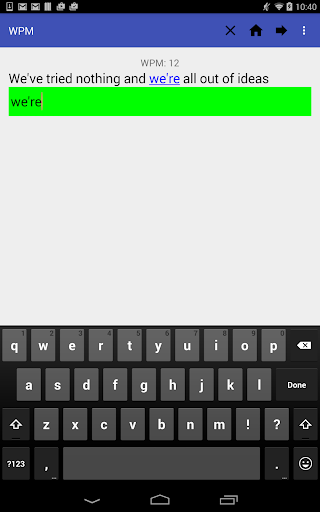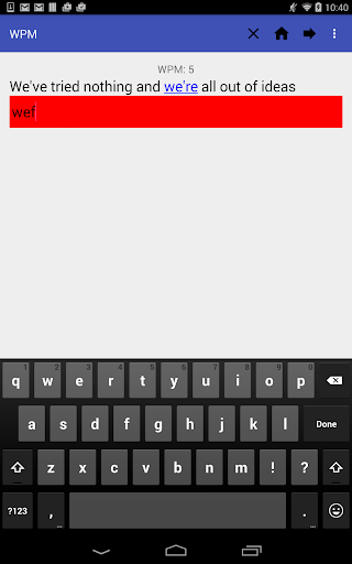 WPM(Words Per Minute) is a typing app that tracks how fast you type with the intent of helping you improve. It features many quotes of varying difficulties and a timer to track how fast you are typing.