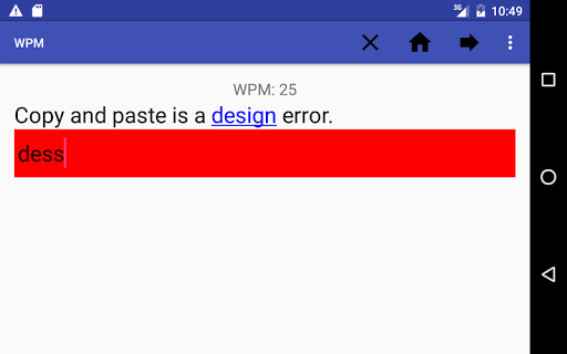 What it different from some of the other typing applications is after a word is typed the input is cleared. Normally you can type a full sentence but I feel it feels nicer to have the input cleared after every word so you don't accidentally delete or change text that was already typed earlier.