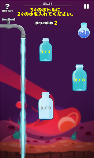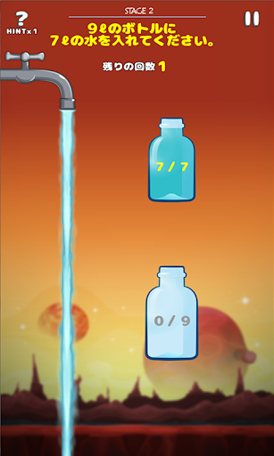 水容量フィット 映画ダイハード3に出てたあのゲーム! 互いに大きさの違う水筒の中の水を移り詰めてミッションに与えられたとおりに水筒に適定容量の水を満たすゲームです。 簡単ながらも頭を使うゲームなのでシンプルながらも中毒性の強いパズルゲームです。